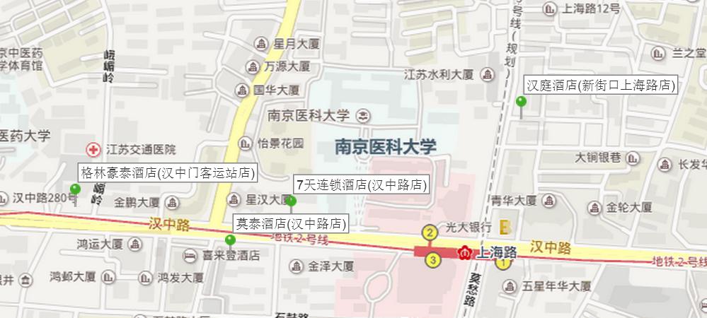 3. 格林豪泰酒店(漢中門客運(yùn)站店):鼓樓區(qū)漢中路278號(漢中路與峨嵋?guī)X交匯處)