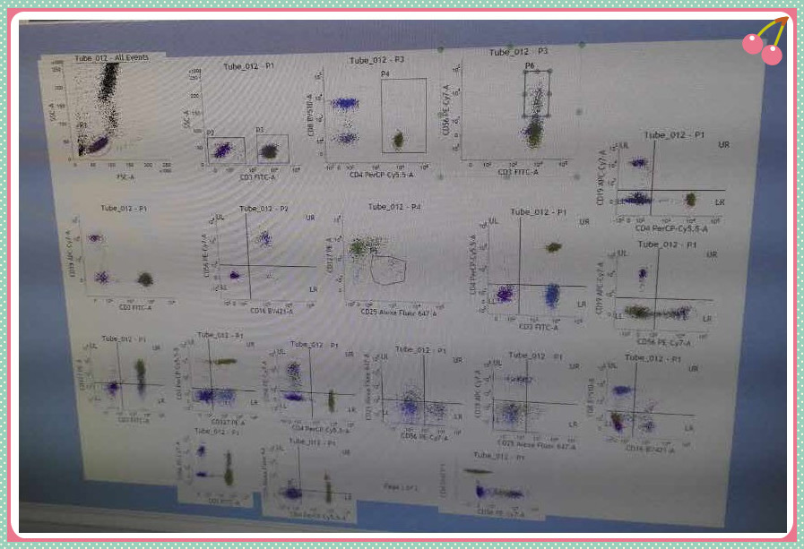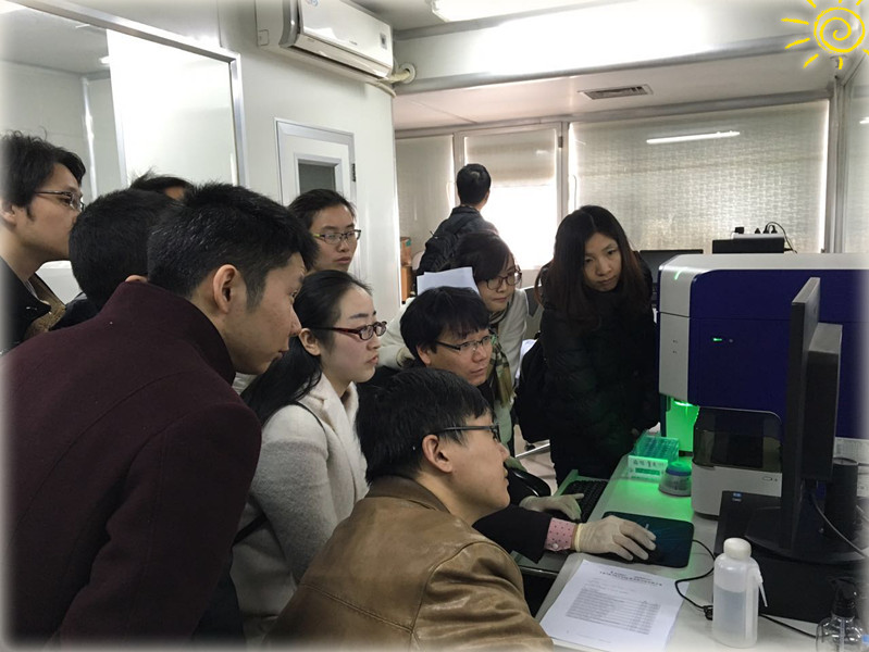 最后為流式儀器檢測,由流式儀器平臺陳老師為上機學員講解上機測試過程以及數(shù)據(jù)分析。陳老師耐心細致的講解,從儀器的初始設置到電壓補償?shù)恼{節(jié),從同型對照及陰性陽性界限的設置,FMO的劃門設置到最終的數(shù)據(jù)分析,深入淺出,循循善誘,學員們都紛紛表示收獲頗豐。