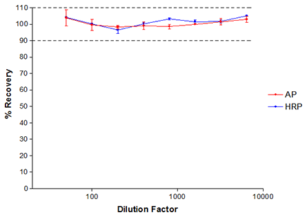 結(jié)果:對于所有稀釋度,計算的CRP量在實(shí)際值的10%以內(nèi)。