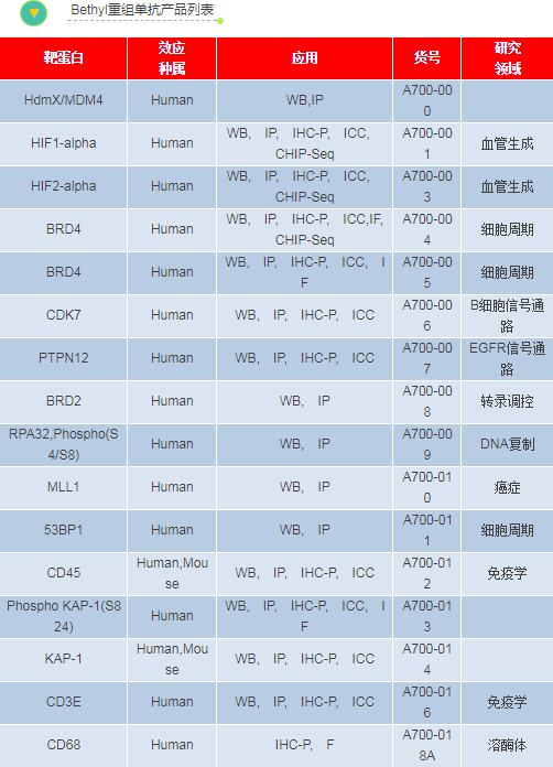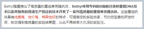 Bethyl特色重組單抗產品數(shù)據(jù)展示