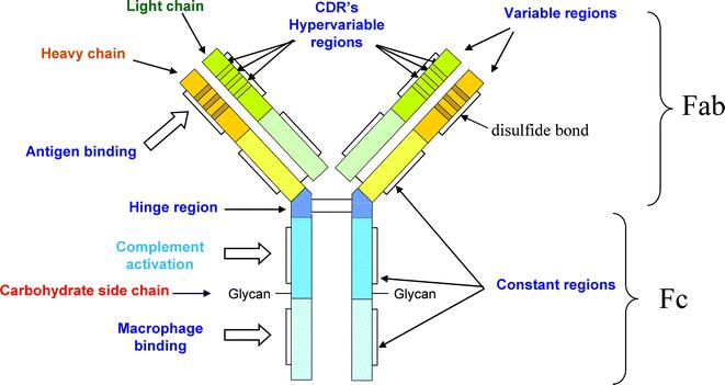 這對Fc片段或重鏈具有特異性:這類抗體和重鏈的Fc部分反應(yīng),一次它們是類別特異性的(即gamma鏈特異性抗體只與IgG反應(yīng),mu鏈特異性抗體只識別IgM,依此類推)。